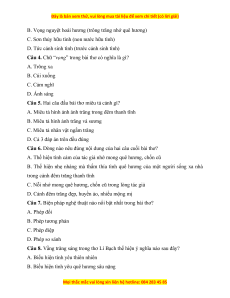 C. Ngũ ngôn tứ tuyệt Đường luật 0,5 điểm Câu 2 A. Biểu cảm 0,5 điểm Câu 3