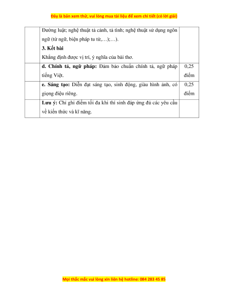 Lưu ý: Chỉ ghi điểm tối đa khi thí sinh đáp ứng đủ các yêu cầu