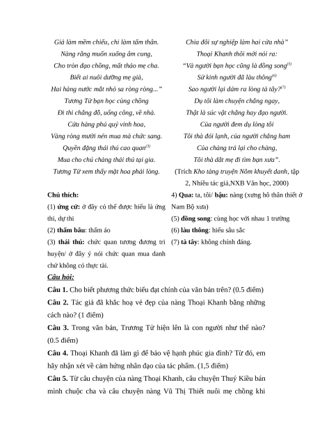 Câu 2. Tác giả đã khắc hoạ vẻ đẹp của nàng Thoại Khanh bằng những cách nào? (1 điểm)