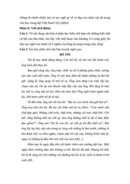 Câu 2: Em hãy phân tích văn bản truyện ngắn sau: BỐ TÔI