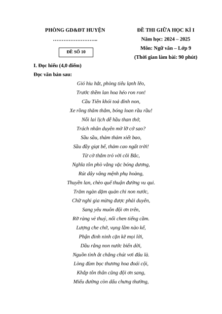 Môn: Ngữ văn – Lớp 9 ĐỀ SỐ 10