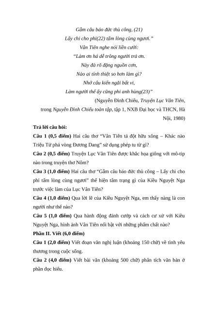 trong Nguyễn Đình Chiểu toàn tập, tập 1, NXB Đại học và THCN, Hà Nội, 1980) Trả lời câu hỏi: