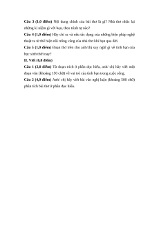 Câu 3 (1,0 điểm) Nội dung chính của bài thơ là gì? Nhà thơ nhắc lại