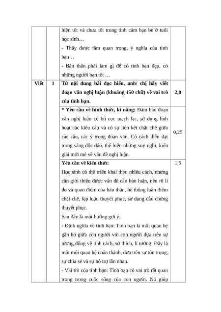 Câu 5 (1,0 điểm) Đoạn thơ trên cho anh/chị suy nghĩ gì về tình bạn của học sinh thời nay?