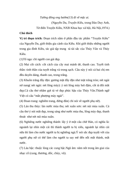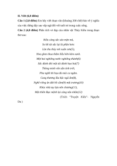Câu 2 (4,0 điểm) Phân tích vẻ đẹp của nhân vật Thúy Kiều trong đoạn thơ sau: