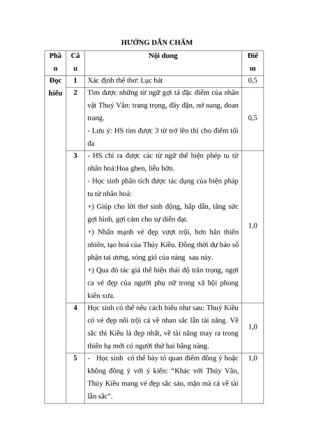 Câu 4 (1,0 điểm) Nêu cách hiểu của em về vẻ đẹp của Thuý Kiều qua