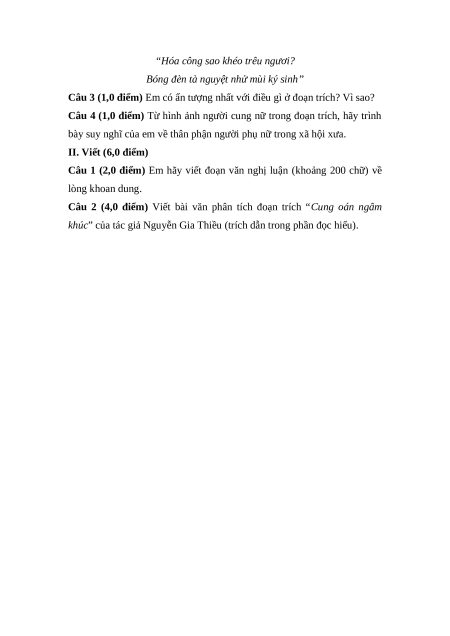 Câu 2 (4,0 điểm) Viết bài văn phân tích đoạn trích “Cung oán ngâm