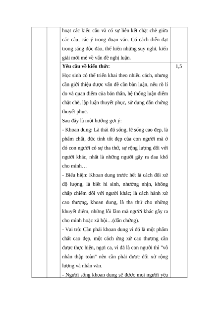 Câu 1 (2,0 điểm) Em hãy viết đoạn văn nghị luận (khoảng 200 chữ) về lòng khoan dung.