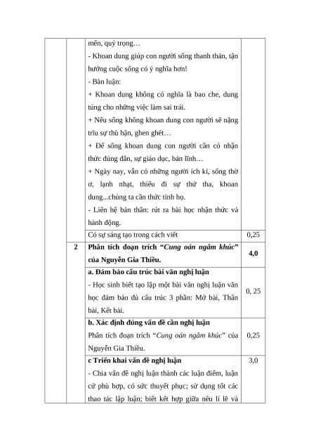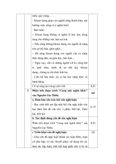* Yêu cầu về hình thức, kĩ năng: Đảm bảo đoạn 0,25