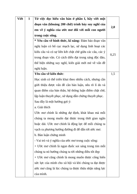 Câu 1 (2,0 điểm) Từ việc đọc hiểu văn bản ở phần I, hãy viết một đoạn văn