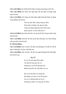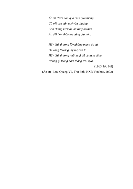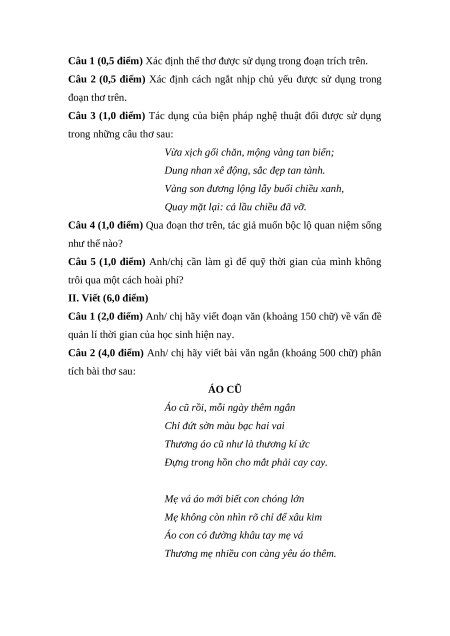Câu 2 (4,0 điểm) Anh/ chị hãy viết bài văn ngắn (khoảng 500 chữ) phân tích bài thơ sau: ÁO CŨ