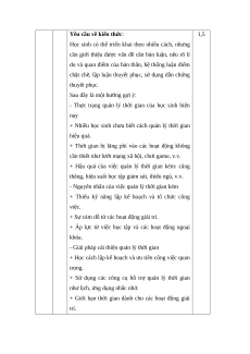 Câu 5 (1,0 điểm) Anh/chị cần làm gì để quỹ thời gian của mình không