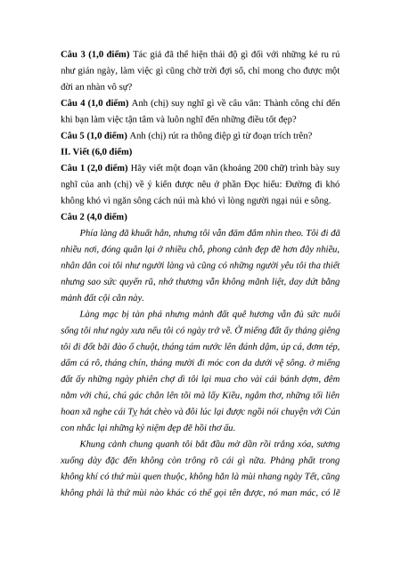 Câu 5 (1,0 điểm) Anh (chị) rút ra thông điệp gì từ đoạn trích trên?