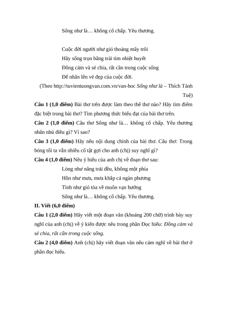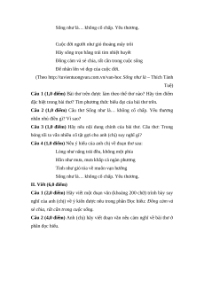 Câu 2 (1,0 điểm) Câu thơ Sống như là… không cố chấp. Yêu thương