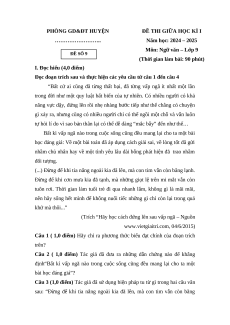 ĐỀ THI GIỮA HỌC KÌ I