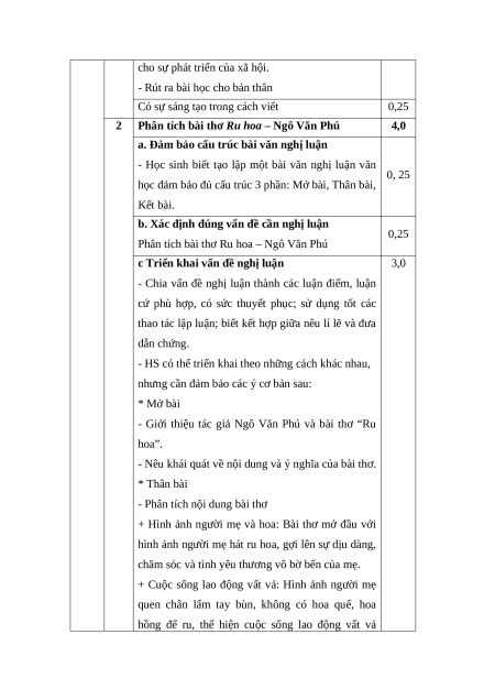 Câu 2 (4,0 điểm) Viết bài văn phân tích bài thơ “Ru hoa” của Ngô Văn Phú. Ru hoa, mẹ hát theo mùa