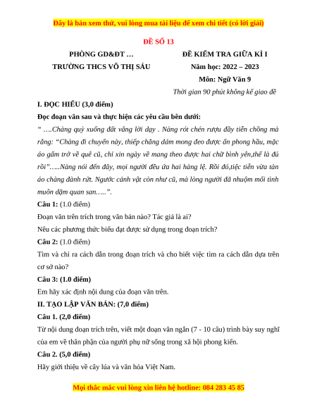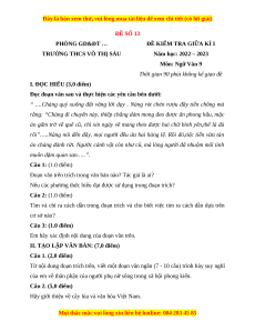 Đề thi giữa kì 1 Ngữ văn 9 - Đề 13