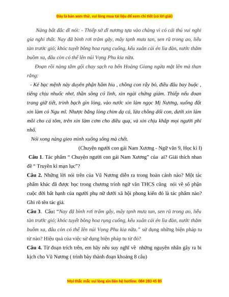 kịch cho Vũ Nương ( trình bày thành đoạn khoảng 8 câu)