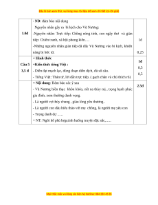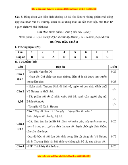 I. Trắc nghiệm: (2đ) Câu 1 2 3 4 5 6 7 8 Đáp án B C A D A C B C II. Tự Luận: (8đ) Câu Đáp án Điểm - Tác giả: Nguyễn Dữ 0,25