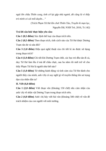 Câu 3 (1,0 điểm) Hiệu quả nghệ thuật của chi tiết kì ảo được sử dụng trong đoạn trích?