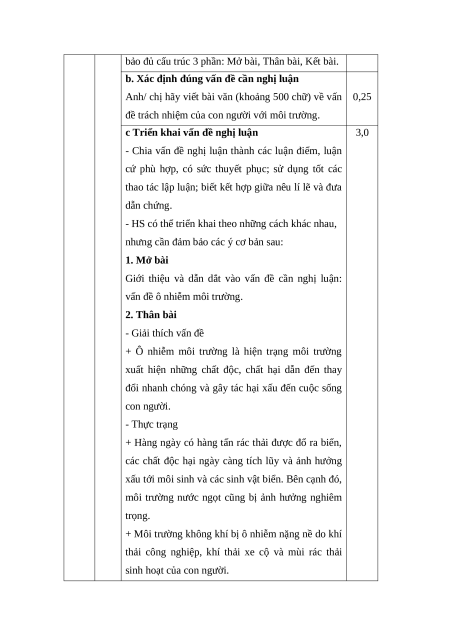 a. Đảm bảo cấu trúc bài văn nghị luận 0,25