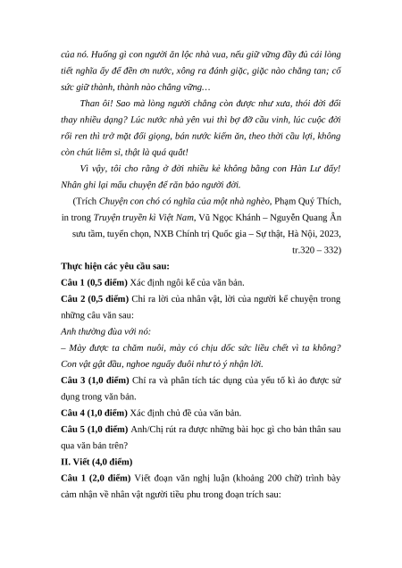 (Trích Chuyện con chó có nghĩa của một nhà nghèo, Phạm Quý Thích,