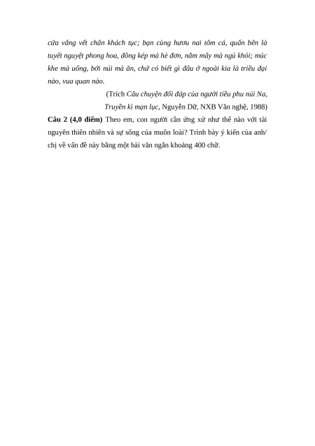 Câu 3 (1,0 điểm) Chỉ ra và phân tích tác dụng của yếu tố kì ảo được sử dụng trong văn bản.