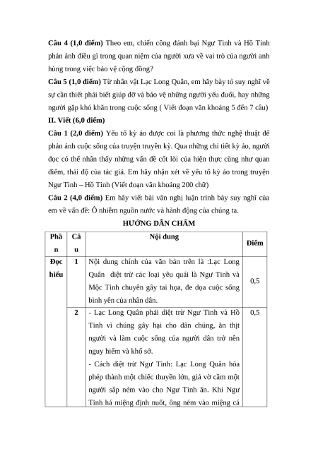 Câu 5 (1,0 điểm) Từ nhân vật Lạc Long Quân, em hãy bày tỏ suy nghĩ về