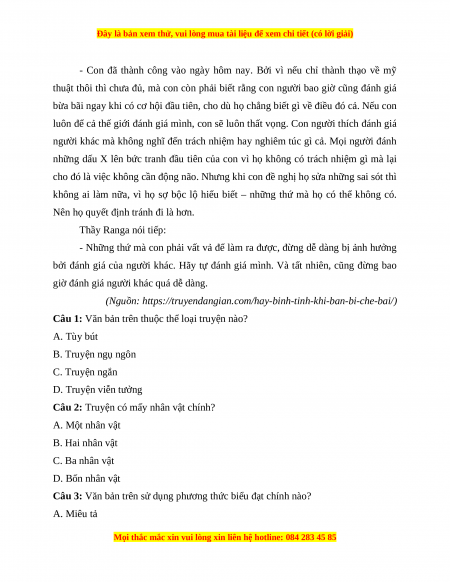 Đây là bản xem thử, vui lòng mua tài liệu để xem chi tiết (có lời giải)