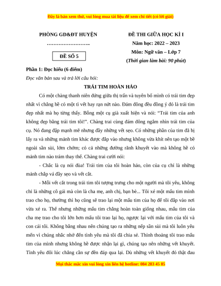 Môn: Ngữ văn – Lớp 7 ĐỀ SỐ 5