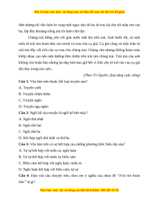 Câu 1: Văn bản trên thuộc thể loại truyện nào? A. Truyền cười B. Truyện châm biếm C. Truyện ngắn D. Truyện ngụ ngôn