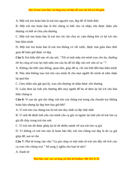 Câu 10: Hãy nêu quan niệm riêng của em về một trái tim hoàn hảo.