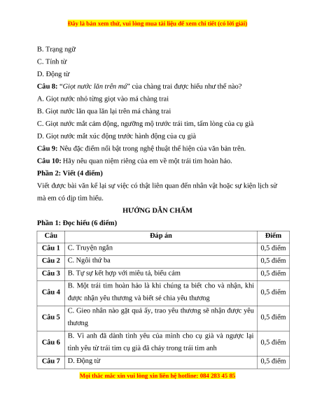 B. Vì anh đã dành tình yêu của mình cho cụ già và ngược lại Câu 6 0,5 điểm