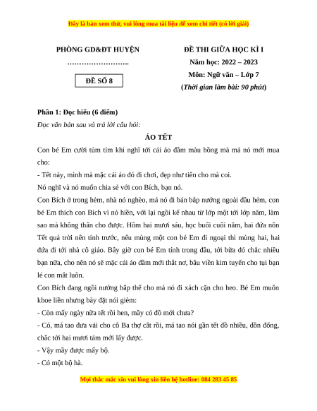 Đọc văn bản sau và trả lời câu hỏi: ÁO TẾT