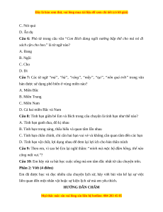 Câu 1: Văn bản trên thuộc thể loại truyện nào? A. Truyện cổ tích B. Truyện cười C. Truyện ngụ ngôn D. Truyện ngắn