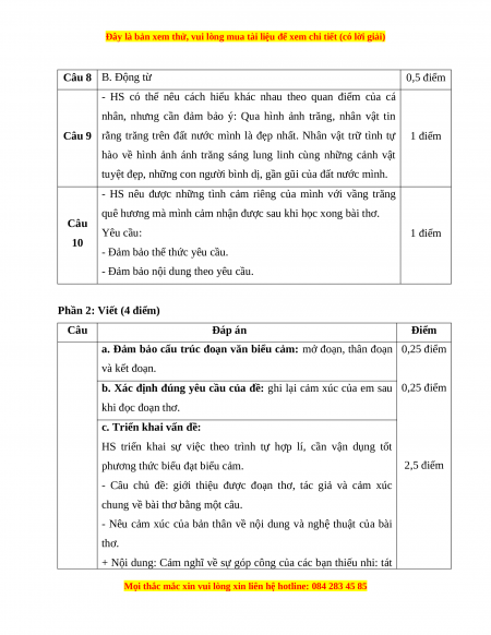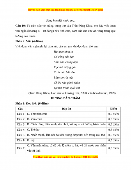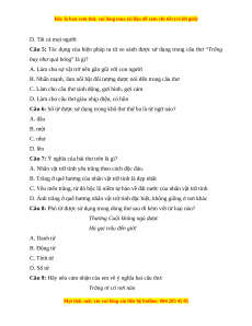 Câu 5 B. Nhấn mạnh, làm nổi bật đối tượng được nói đến trong câu thơ 0,5 điểm Câu 6 B. một 0,5 điểm