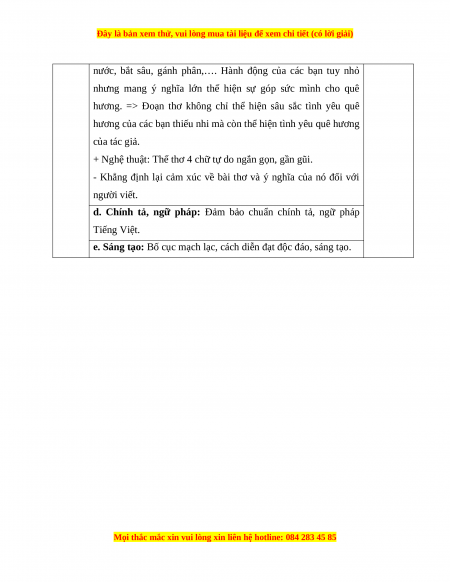 e. Sáng tạo: Bố cục mạch lạc, cách diễn đạt độc đáo, sáng tạo.