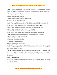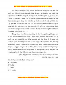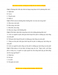 Câu 2: Phương thức biểu đạt chính sử dụng trong đoạn trích là phương thức nào? A. Nghị luận B. Tự sự C. Thuyết minh D. Miêu tả