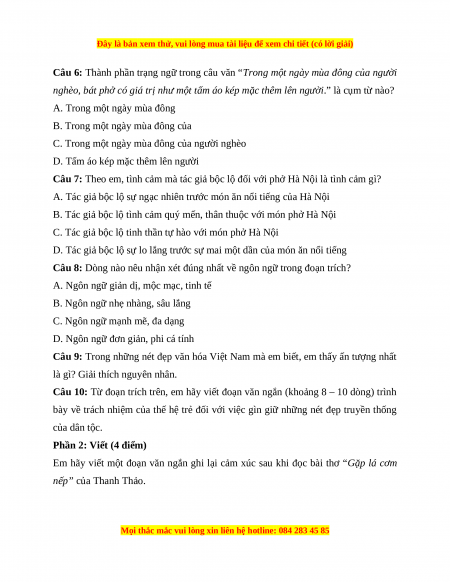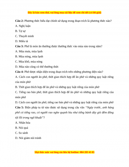 Đây là bản xem thử, vui lòng mua tài liệu để xem chi tiết (có lời giải)