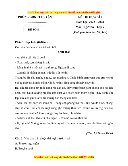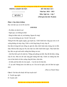 Môn: Ngữ văn – Lớp 7 ĐỀ SỐ 8