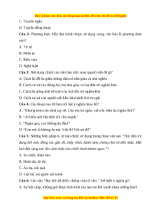 Câu 2: Phương thức biểu đạt chính được sử dụng trong văn bản là phương thức nào? A. Tự sự B. Miêu tả C. Biểu cảm D. Nghị luận