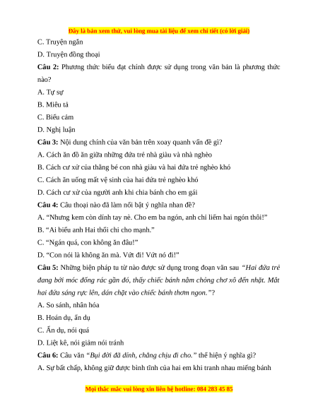 B. Những khó khăn, cơ cực, thiếu thốn cũng như cái nghèo khổ Câu 6 0,5 điểm bám lấy hai anh em