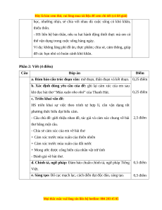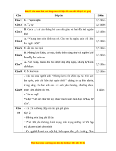 Câu Đáp án Điểm