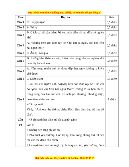 Câu 9: Câu nói của người anh “Nhưng kem còn dính tay nè. Cho em ba ngón, anh