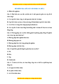 ĐỀ KIỂM TRA GIỮA KÌ 1 SINH HỌC 10 (ĐỀ 2)