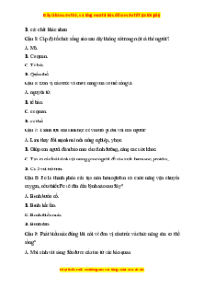 Câu 5: Cấp độ tổ chức sống nào sau đây không có trong một cá thể người? A. Mô. B. Cơ quan. C. Tế bào. D. Quần thể.