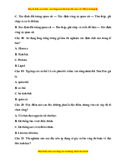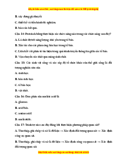 Câu 15: Các sinh vật sống và các cấp độ tổ chức khác của thế giới sống là đối tượng nghiên cứu của A. sinh học. B. hóa sinh học.