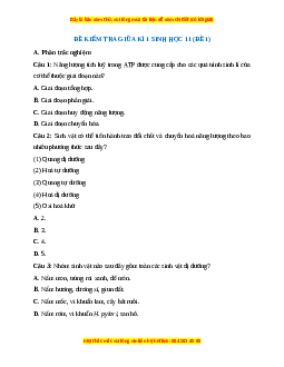 ĐỀ KIỂM TRA GIỮA KÌ 1 SINH HỌC 11 (ĐỀ 1)
