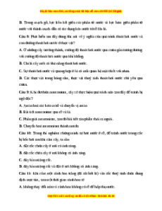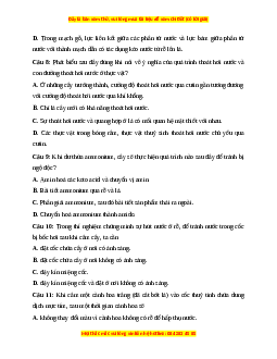 Câu 5: Phát biểu nào dưới đây không đúng khi nói về vai trò của nước đối với