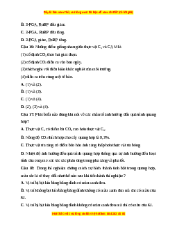 Câu 15: Ở thực vật C3, khi giảm nồng độ CO2 thì lượng 3-PGA và RuBP trong chu